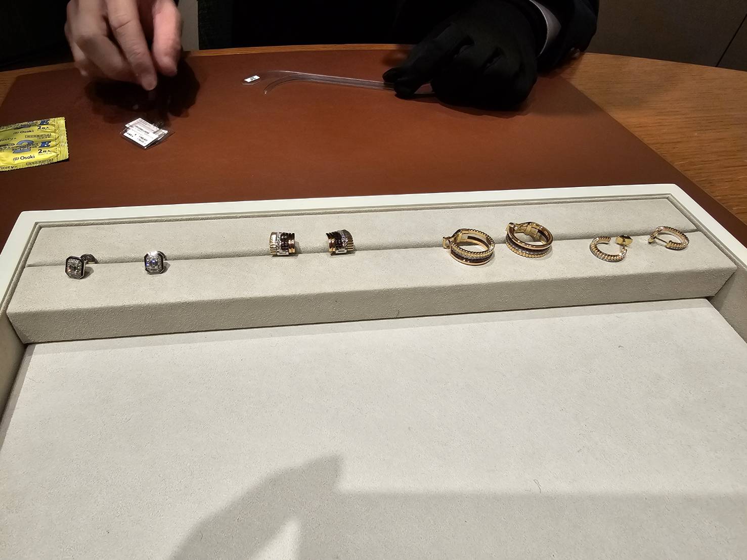 一方、一番左のダイヤモンドのピアスの方が品があっていいと言われました。