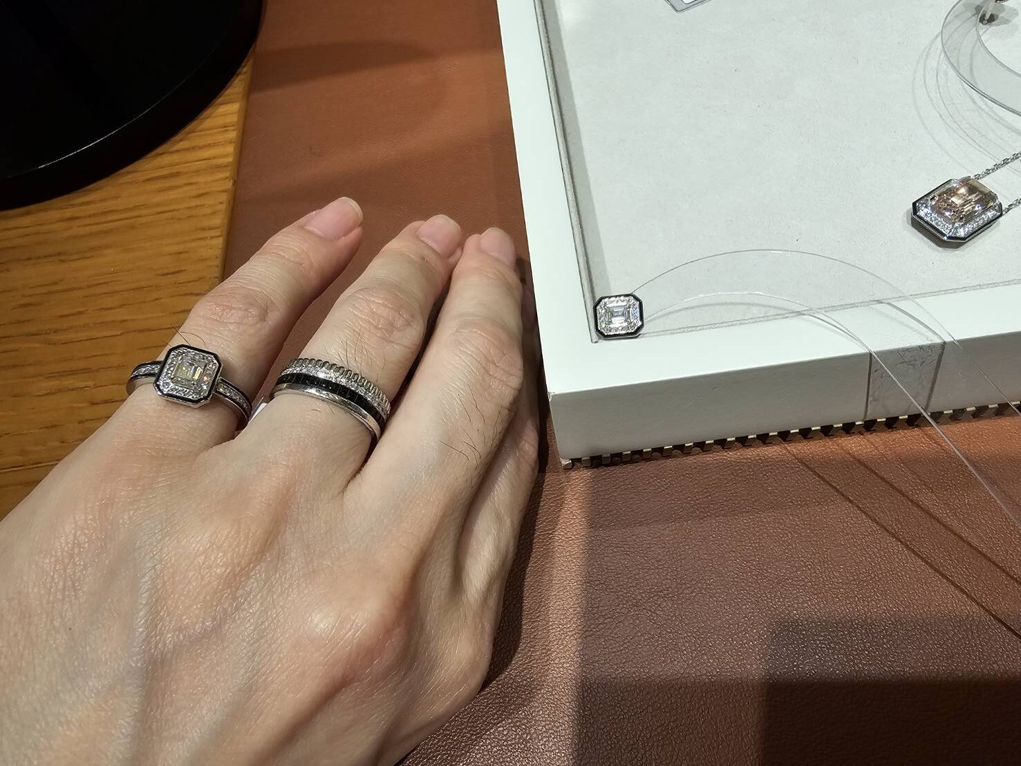 その流れで、ダイヤモンドピアスとお揃いにということで、リングやブレスレットも紹介されました。