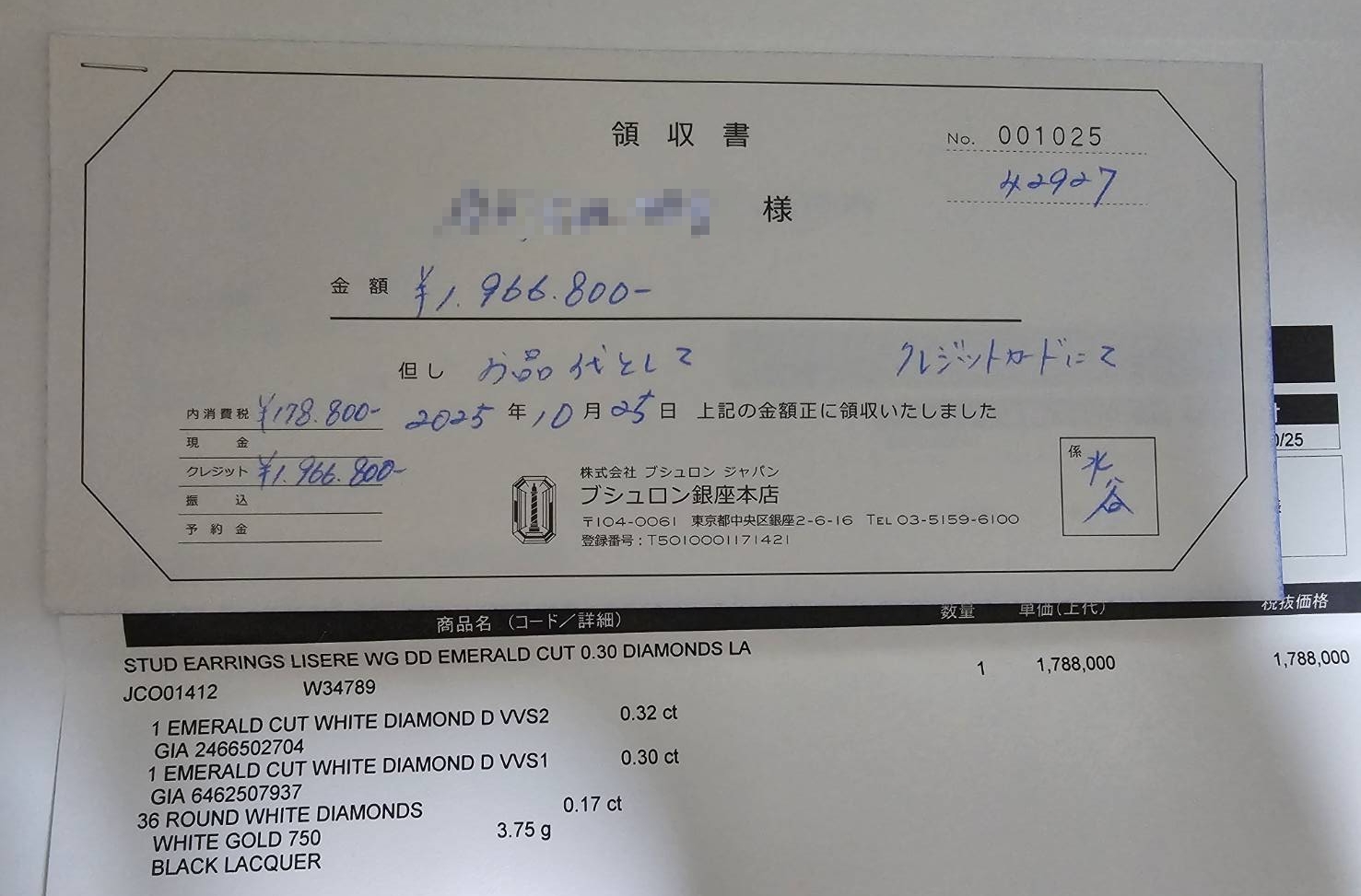 先日、ブシュロンでピアスを購入しました。